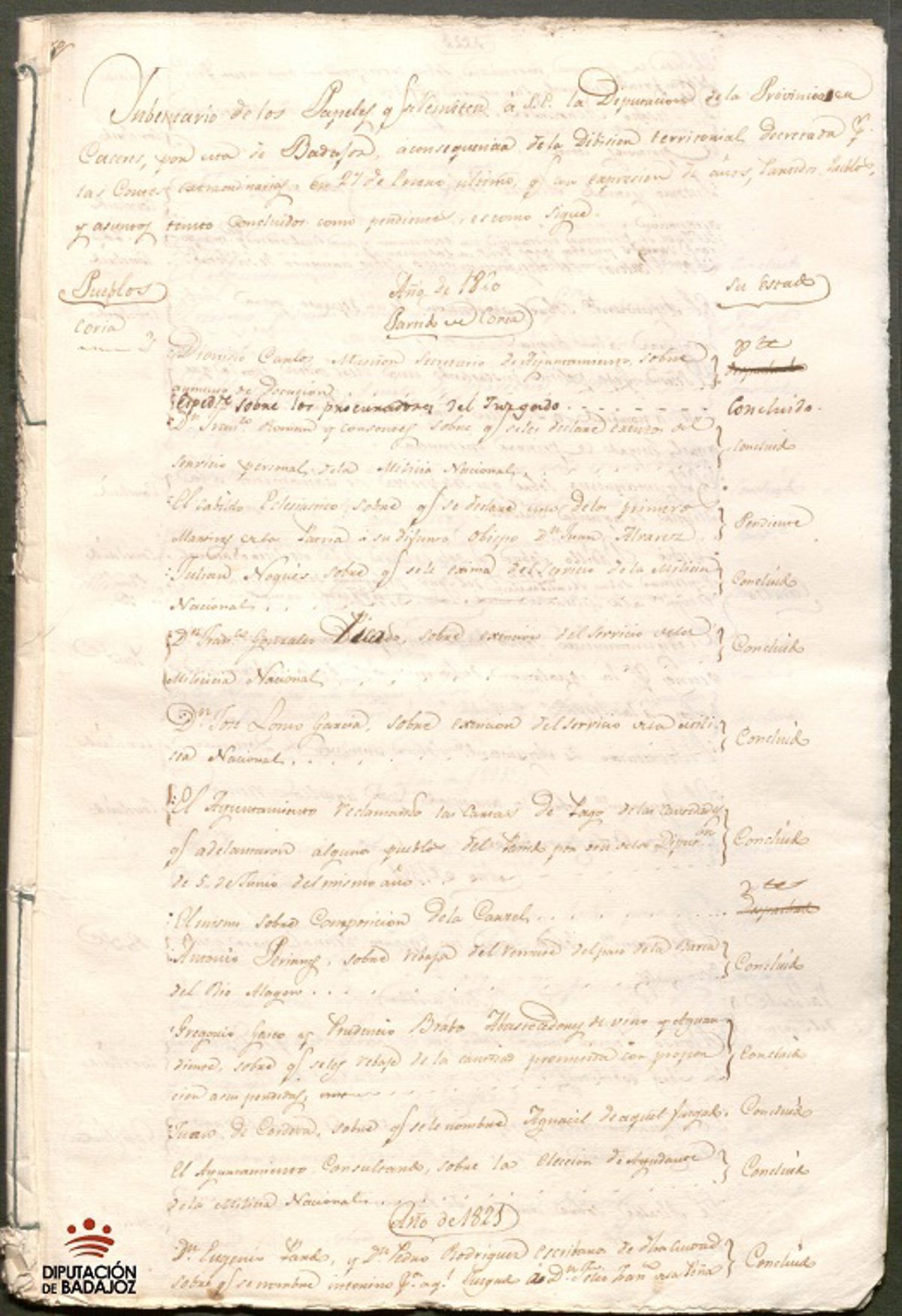 Para ello, ha seleccionado el 'inventario de los papeles' remitidos desde la diputación pacense a su homóloga cacereña a consecuencia de la instalación de ambas instituciones tras la división territorial de 27 de enero de 1822.