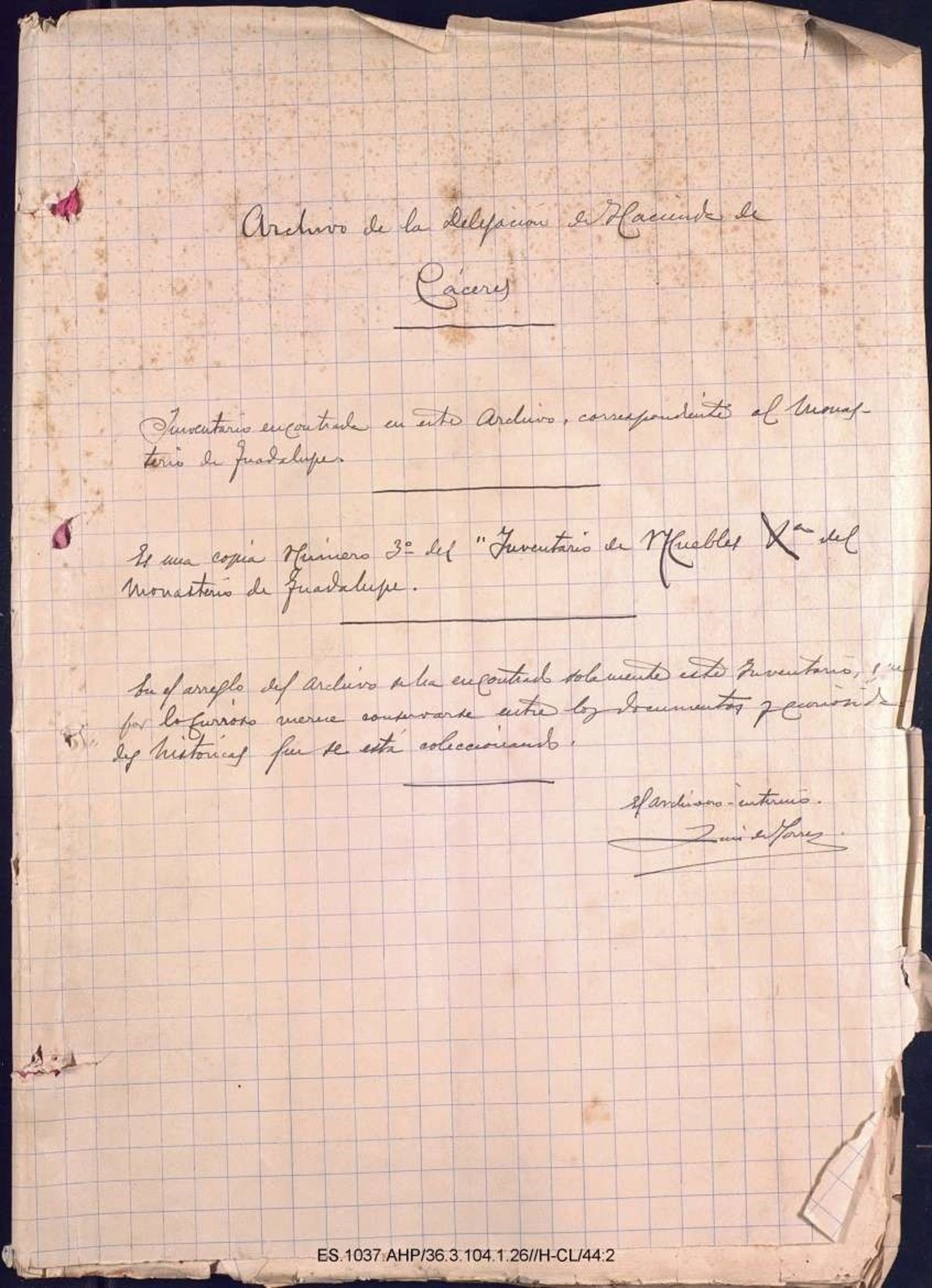 Igualmente, mostrará el Inventario de bienes, censos, muebles y efectos del Monasterio de Santa María de Guadalupe (1833-1836) y completará esta semana de celebraciones con unas Jornadas de puertas abiertas en la que se podrá realizar una visita guiada al Archivo Histórico Provincial de Cáceres (con cita previa a través del 927005400 o archivohistoricocc@juntaex.es)
