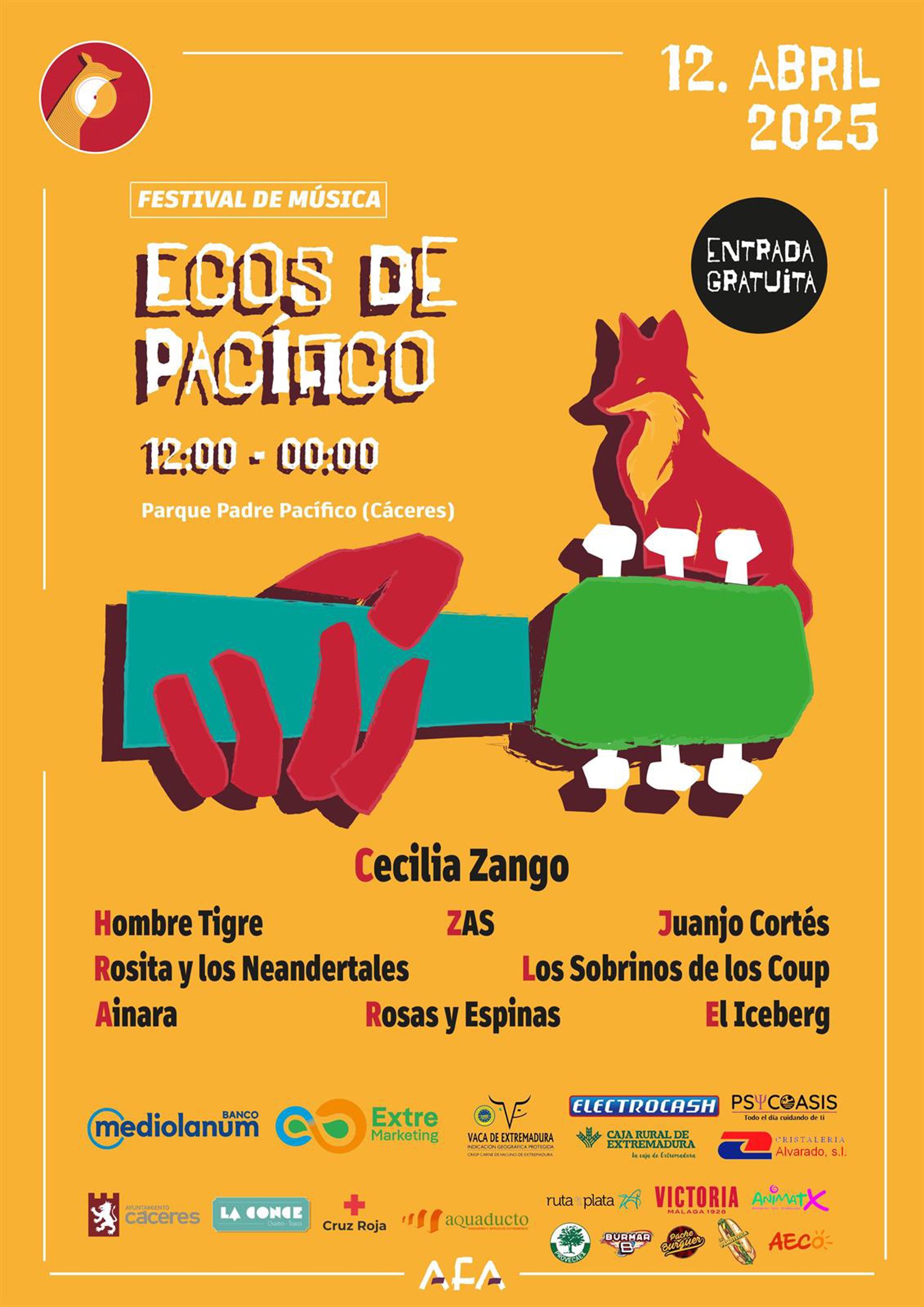 Cáceres estrenará el sábado 12 de abril un nuevo festival, denominado Ecos de Pacífico, que se celebrará en el Parque del Padre Pacífico con la actuación de varios artistas locales y actividades de ocio y gastronomía que se desarrollarán en este espacio a lo largo de la jornada, con entrada gratuita.