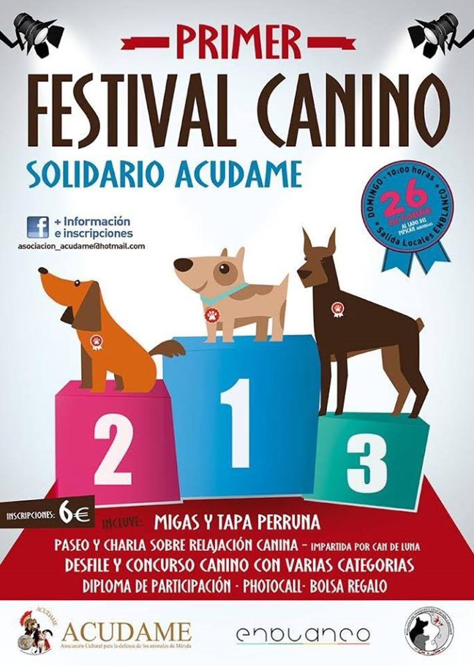 La asociación protectora Acudame de Mérida ha organizado el I Festival Canino Solidario que tendrá lugar el próximo domingo, 26 de octubre, y que tiene como finalidad recabar fondos destinados a los cuidados y atención de los perros abandonados de la capital autonómica.