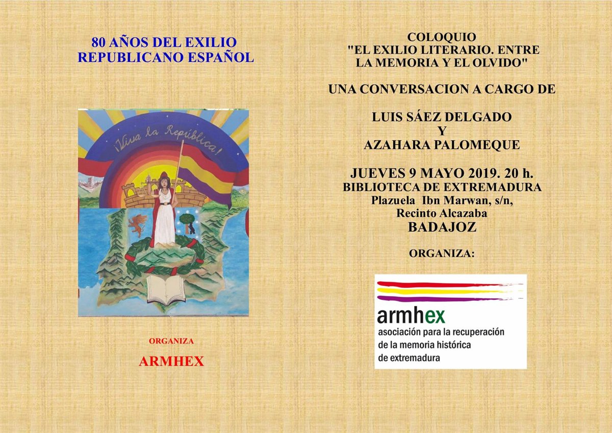 La Asociación para la Recuperación de la Memoria Histórica de Extremadura (Armhex) ha organizado este jueves, día 9, en Badajoz, un coloquio sobre el exilio literario.