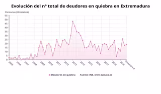 Evolución del número de deudores en quiebra en Extremadura - EPDATA