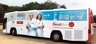 El 'Dentibús' cuenta con la colaboración de Oral B, Trident y Alsa, y dispone de dos gabinetes dentales atendidos por un equipo de dentistas e higienistas dentales colegiados.