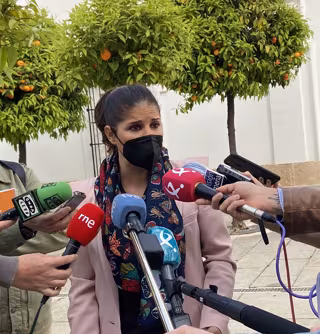La consejera de Igualdad y Portavoz de la Junta de Extremadura, Isabel Gil Rosiña, atiende a los medios tras registrar la solicitud del Debate Sobre el Estado de la Región - EUROPA PRESS