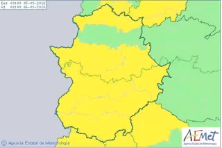 En concreto, el aviso de nivel amarillo por precipitaciones se activará a las 00,00 horas de este lunes y permanecerá activo hasta las 18,00 horas, con probabilidad de acumulación de 40 litros por metro cuadrado en doce horas en el norte de la provincia cacereña.