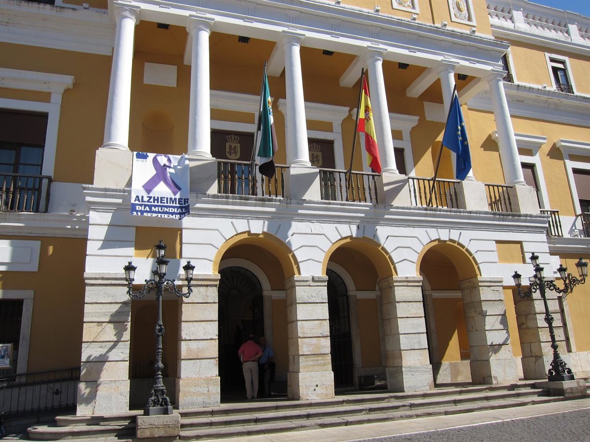 El Ayuntamiento de Badajoz luce este miércoles, 21 de septiembre, un gran lazo de color morado con motivo del Día Mundial del Alzheimer que la Asociación de Familiares de Personas con Alzheimer Extremadura (Afaex) en Badajoz y el consistorio han celebrado con un acto conmemorativo.