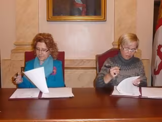 La alcaldesa de Cáceres, Carmen Heras, ha firmado este miércoles un convenio de colaboración con la presidenta de la Asociación Cacereña para la Protección y Defensa de los Animales, Juana García Arjona, con el fin de renovar el servicio que este colectivo presta en la recogida, traslado, acogida y mantenimiento de los animales de compañía extraviados o abandonados en el término municipal de Cáceres.