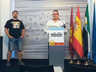 Andrés Montero y Marco Antonio Guijarro en rueda de prensa sobre recomendaciones para animales de compañía ante ruidos en la Feria de Mérida - EUROPA PRESS