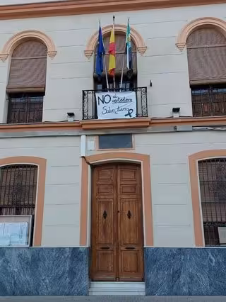 Pancarta contra el vertedero en la fachada del Ayuntamiento de Salvatierra de los Barros. - AYUNTAMIENTO DE SALVATIERRA/FACEBOOK