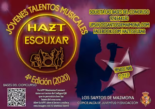 El Ayuntamiento de Los Santos de Maimona (Badajoz) convoca el IV Concurso de talentos Musicales "HAZT Escuxar", situado dentro del programa "Maimona Joven 2020".