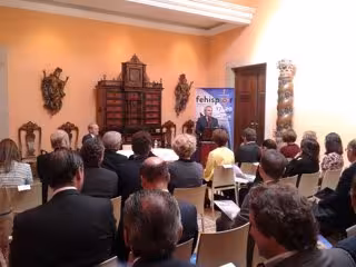 El embajador de España en Portugal, Juan Manuel de Barandica, el alcalde de Badajoz, Francisco Javier Fragoso, y la concejala delegada de Ifeba, María José Solana, han participado en este acto de presentación de la "principal feria hispano portuguesa de la península" al que también han asistido autoridades de empresas y organismos públicos de Portugal.