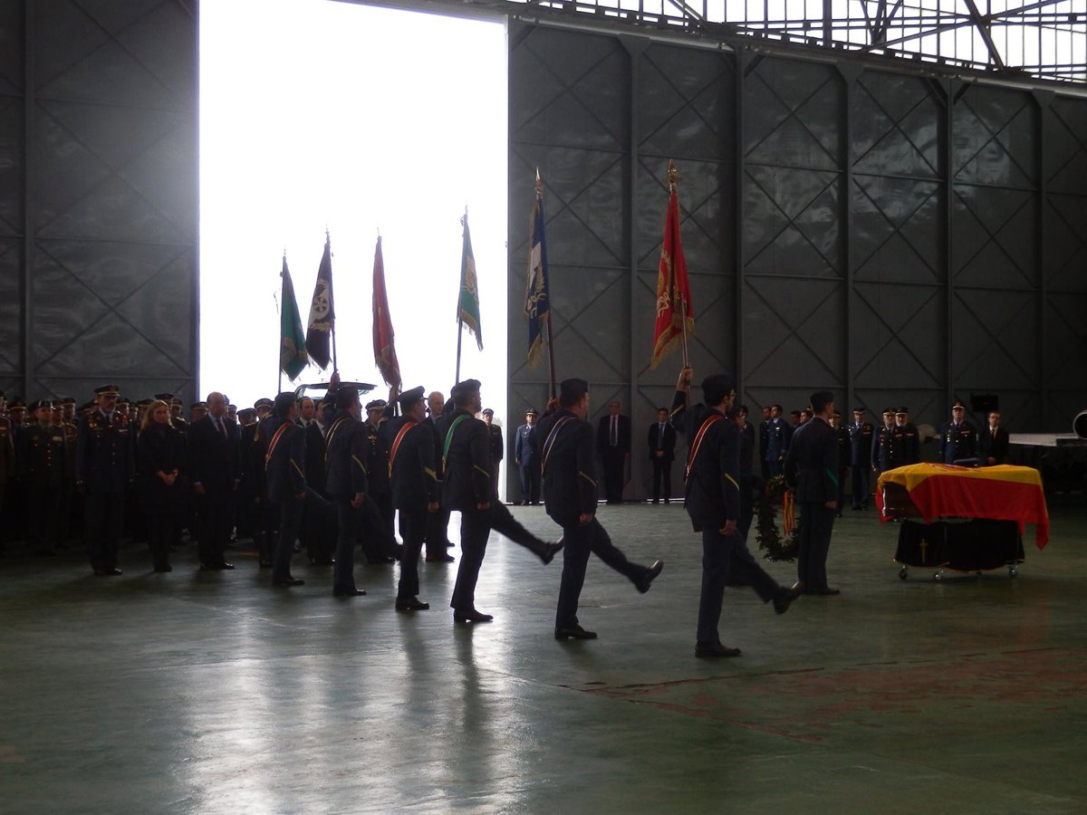 Tras el acto, el féretro con los restos mortales de Ángel Álvarez ha partido de la Base Aérea de Talavera la Real para darle sepultura en una ceremonia que se celebrará en la intimidad por expreso deseo de la familia.