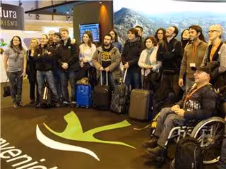 A las 15,00 horas de este viernes se han dado cita todos los blogueros en el stand de Extremadura, en Fitur para partir desde la feria a la región.