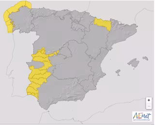 De esta forma, se activará la alerta en Huelva, Huesca, Cáceres, Badajoz, Lugo, Ourense, Pontevedra, Ávila, Salamanca y Zamora, según ha informado AEMET.