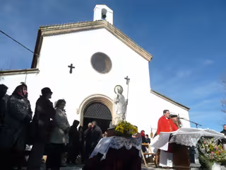 Carmen Heras ha participado en la misa cantada por el grupo Alborada y ha compartido los aperitivos de la mesa de ofrenda que para la ocasión se preparan, mientras que la agrupación 'El Redoble' amenizaba la mañana.