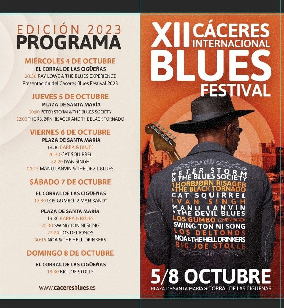 Esta duódécima edición del Cáceres Blues Festival concluirá el domingo, día 8, a las 13,30 horas, con un concierto en El Corral de las Cigüeñas a cargo del cantante berlinés Big Joe Stolle.