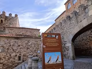 Cartel de la ZEPA urbana de Cáceres junto al Arco de la Estrella - EUROPA PRESS