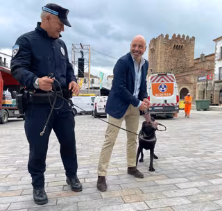 El Ayuntamiento de Cáceres ha rendido homenaje al agente canino Thor, que se despide del servicio en la Policía Local durante la celebración del festival Womad, y también a su instructor Julio Bejarano, que se jubilará en las próximas semanas. De esta forma se ha querido reconocer la importante labor que han llevado a cabo tanto en la detección de drogas como en la sensibilización con los más jóvenes.