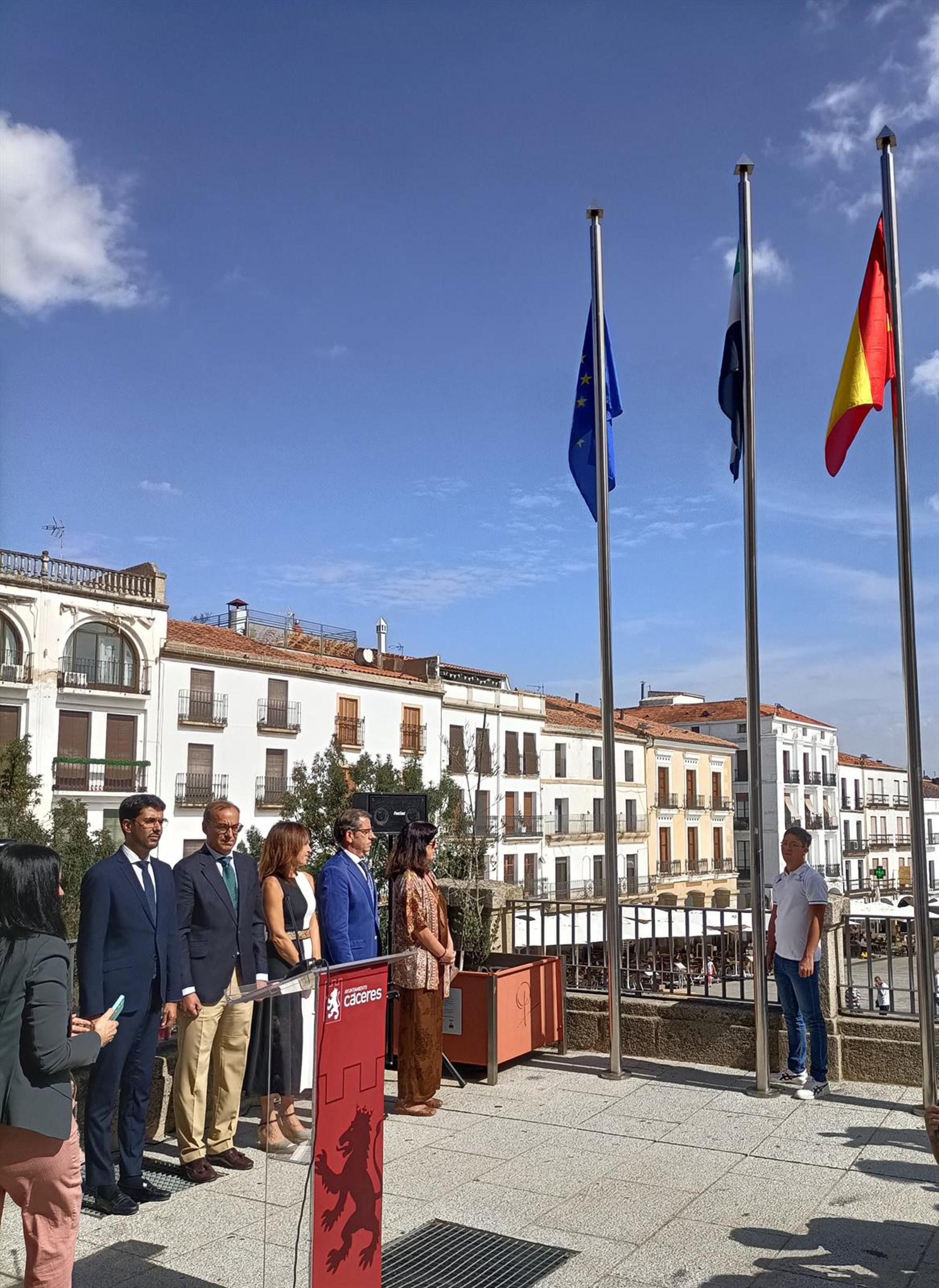 El Ayuntamiento de Cáceres se ha sumado a la celebración del Día de Extremadura con un acto institucional celebrado este jueves en las escalinatas del edificio consistorial, en el cual el alcalde Rafael Mateos ha leído una declaración institucional consensuada por todos los grupos municipales.