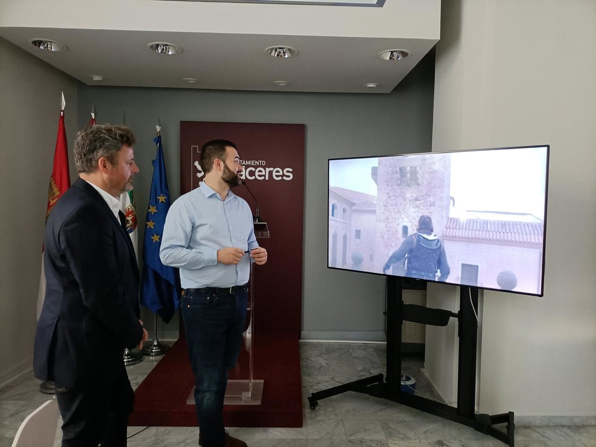 El concejal de Turismo, Jorge Villar, y el alcalde de Cáceres, Luis Salaya, presentan la oferta que la ciudad llevará a Fitur 2023 - EUROPA PRESS