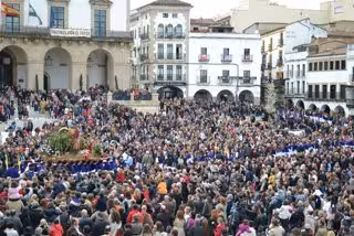 Tras enfilar la calle Godoy, la procesión discurre por la calle Zapatería, plaza del Duque, Gabriel y Galán, Plaza Mayor, Gran Vía, San Juan, Pintores, Plaza Mayor, General Ezponda, Santo Domingo, Andrada, Ríos Verdes, Margallo, Sancti Espíritu, plaza del Duque, Zapatería, Godoy y Santiago, donde se recogerá. El acompañamiento musical lo pondrá la Agrupación Musical Ntra. Sra. de la Misericordia y la Banda Municipal de Cáceres.