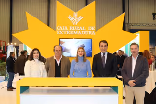 El presidente de Caja Rural de Extremadura, Urbano Caballo, y la presidenta de Ribera del Guadiana, María Luisa Regaña, han mostrado este acuerdo durante un encuentro celebrado en el stand de la entidad financiera en Agroexpo, con la presencia del director general de la Caja, Juan Palacios; la secretaria del Consejo Regulador, Catalina García, y el director gerente de la DO, Francisco Javier López.