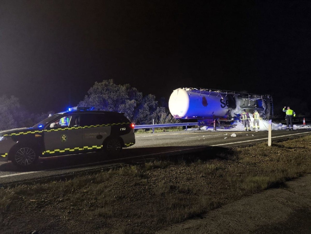 El siniestro se produjo sobre las 20,30 horas en el kilómetro 732 de la autovía, y como consecuencia quedó completamente interrumpida la circulación, desviando el tráfico por la N-630.