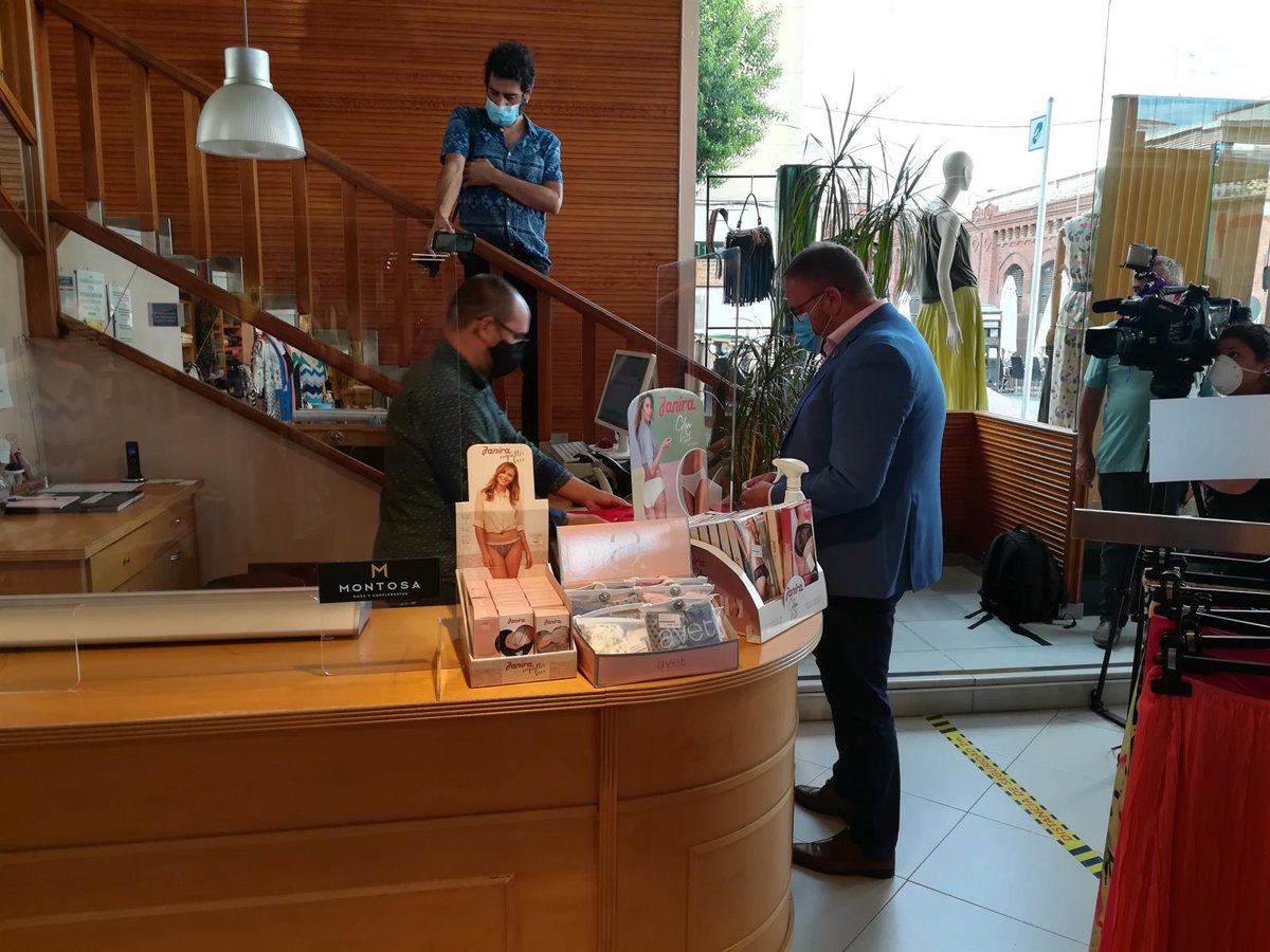 En su recorrido se ha acercado a Montosa, donde ha canjeado su bono. Más tarde el alcalde ha visitado el nuevo establecimiento de Amaro Sport, en la calle Delgado Valencia, que ha abierto sus puertas en el mes de agosto.