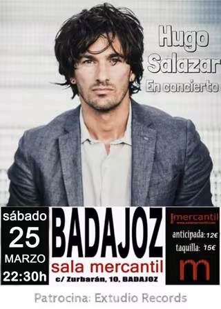 El cantante sevillano Hugo Salazar ofrecerá un concierto el próximo sábado, día 25, a las 22,30 horas, en la sala Kusso Mercantil de Badajoz, donde presentará su nuevo single, titulado "Pólvora".