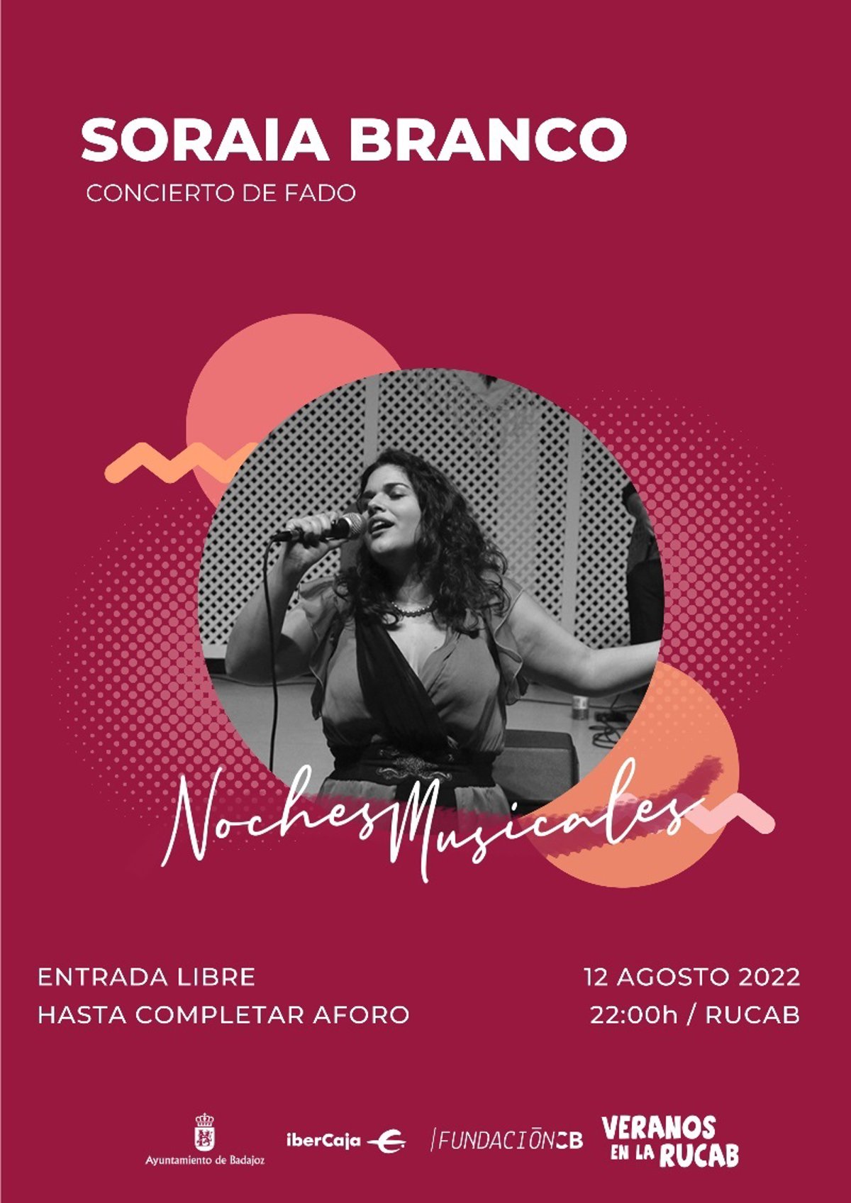 La fadista Soraia Branco ofrecerá un concierto este viernes, 12 de agosto, en la Residencia Universitaria Rucab, de Badajoz, a las 22,00 horas.