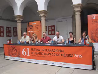 A la presentación de la obra este jueves han asistido el director del Teatro Clásico de Mérida, Jesús Cimarro, el director general de Promoción Cultural en funciones de la Junta de Extremadura, José Antonio Agúndez, la delegada de Cultura, Ana Aragoneses, el director de la obra, Miguel del Arco y las actrices Carmen Machi y Manuela Paso.