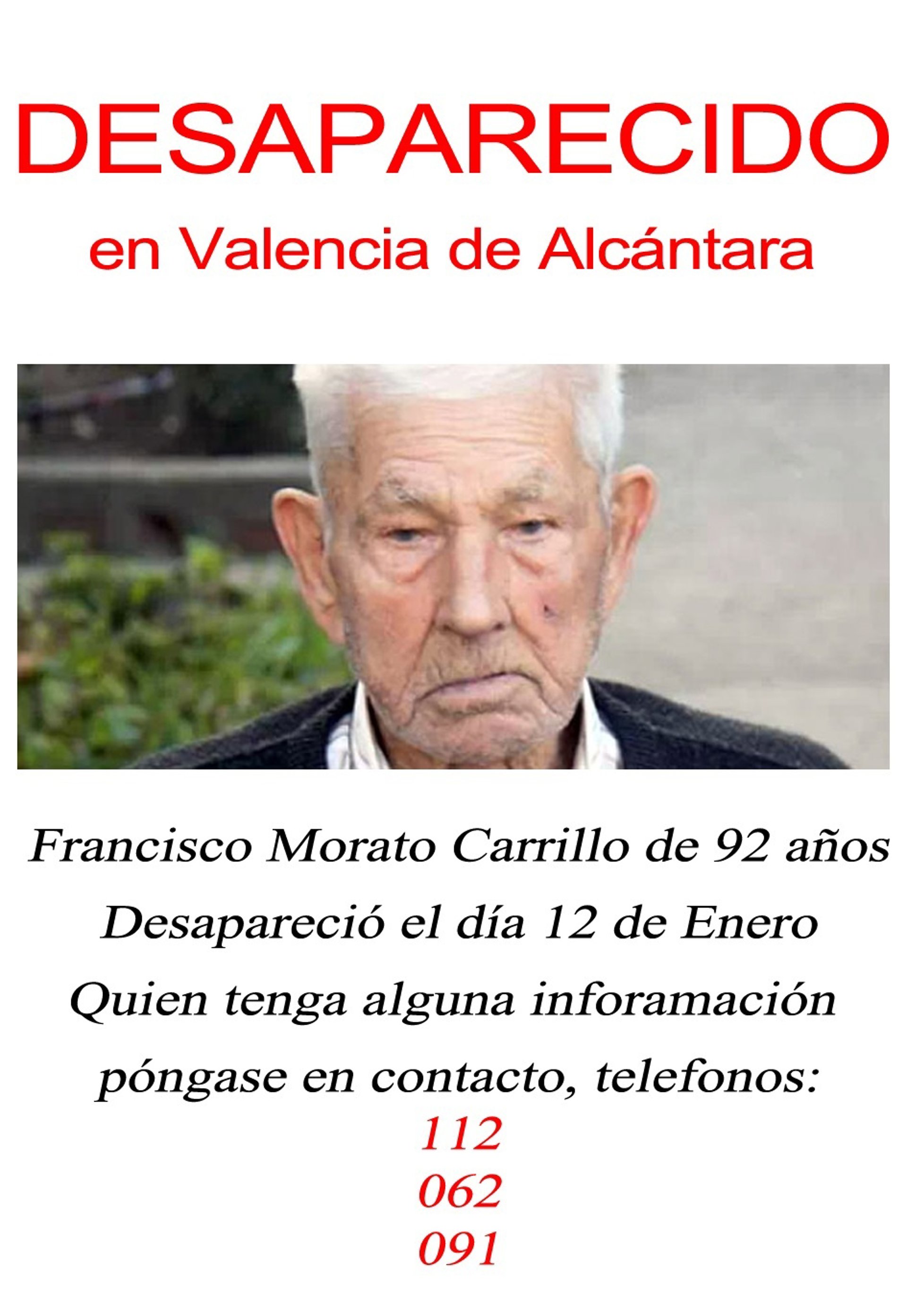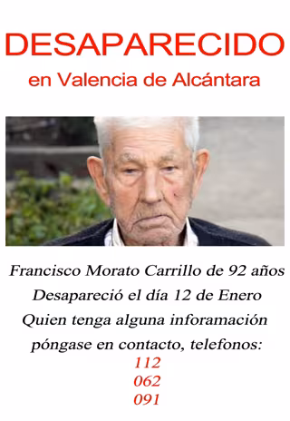 Varios carteles con la fotografía del desaparecido en Valencia de Alcántara (Cáceres), Francisco Morato, repartidos por zonas cercanas a la localidad, principalmente por municipios portugueses, ayudarán a su búsqueda.