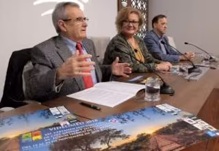 La diputada de la Diputación de Badajoz Rosario Moreno, el director del Certamen, Andrés Bas, y Joaquín González Moya, miembro de la organización, han presentado este viernes este certamen cuyo origen se remonta al año 1985 por iniciativa de un grupo de profesionales sanitarios del antiguo Hospital Provincial.