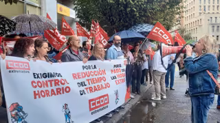 El sindicato CCOO en Extremadura se ha concentrado este lunes, 7 de octubre, frente a la Inspección de Trabajo en Badajoz, para reclamar que actúe "ya", ponga los medios y haga campañas para "controlar" las horas extras que los trabajadores están haciendo en la región y que no se están pagando, que calcula en más de 2 millones de horas extraordinarias al año.