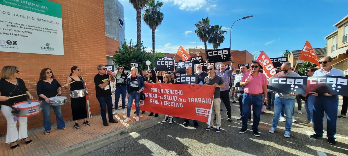El sindicato Comisiones Obreras en Extremadura se ha concentrado este viernes 28 de abril con motivo de la celebración del Día Internacional de la Seguridad y Salud en el Trabajo frente a la sede de la patronal extremeña (Creex) en Badajoz, donde ha exigido que se habiliten los recursos "suficientes" para evitar los accidentes y las muertes en el trabajo.