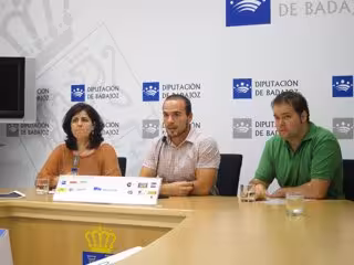 El alcalde de Villar del Rey, Moisés García; la gestora cultural, Estrella García, y el presidente de la asociación local 'Arriba el telón' que organiza el teatro, Javier Figueredo, han presentado esta festividad, que este año retoma una antigua tradición de la localidad, consistente en confeccionar calaveras con melones o calabazas, a las que, posteriormente, se les introduce una vela en su interior, y que son portadas por los niños de camino a las hogueras de 'Las luminarias'.