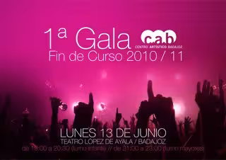 El Centro Artístico de Badajoz (CAB) celebrará este lunes, 13 de junio su primera gala fin de curso 2010/11 en el Teatro López de Ayala de la capital pacense.