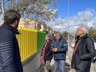 El concejal de Infraestructuras, Andrés Licerán, y la alcaldesa en funciones, María José Pulido, visitan las obras del nuevo cerramiento del CEI Mejostilla - AYUNTAMIENTO DE CÁCERES