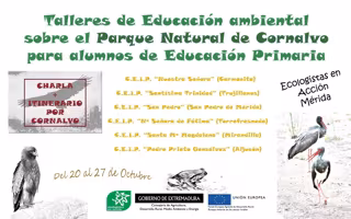 Cerca de 200 estudiantes de seis centros de Primaria de la provincia de Badajoz participará en talleres de educación ambiental sobre el Parque de Cornalvo que desarrolla durante este mes de octubre Ecologistas en Acción Mérida.