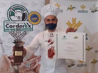 El chef Alejandro Hernández Talaván, del Restaurante Versátil de Zarza de Granadilla (Cáceres), ha sido el ganador del Premio Espiga, concedido por Corderex y Caja Rural de Extremadura a la mejor propuesta culinaria elaborada con carne de cordero, proporcionada por el Consejo Regulador de la I.G.P. Cordero de Extremadura, 'Corderex'.