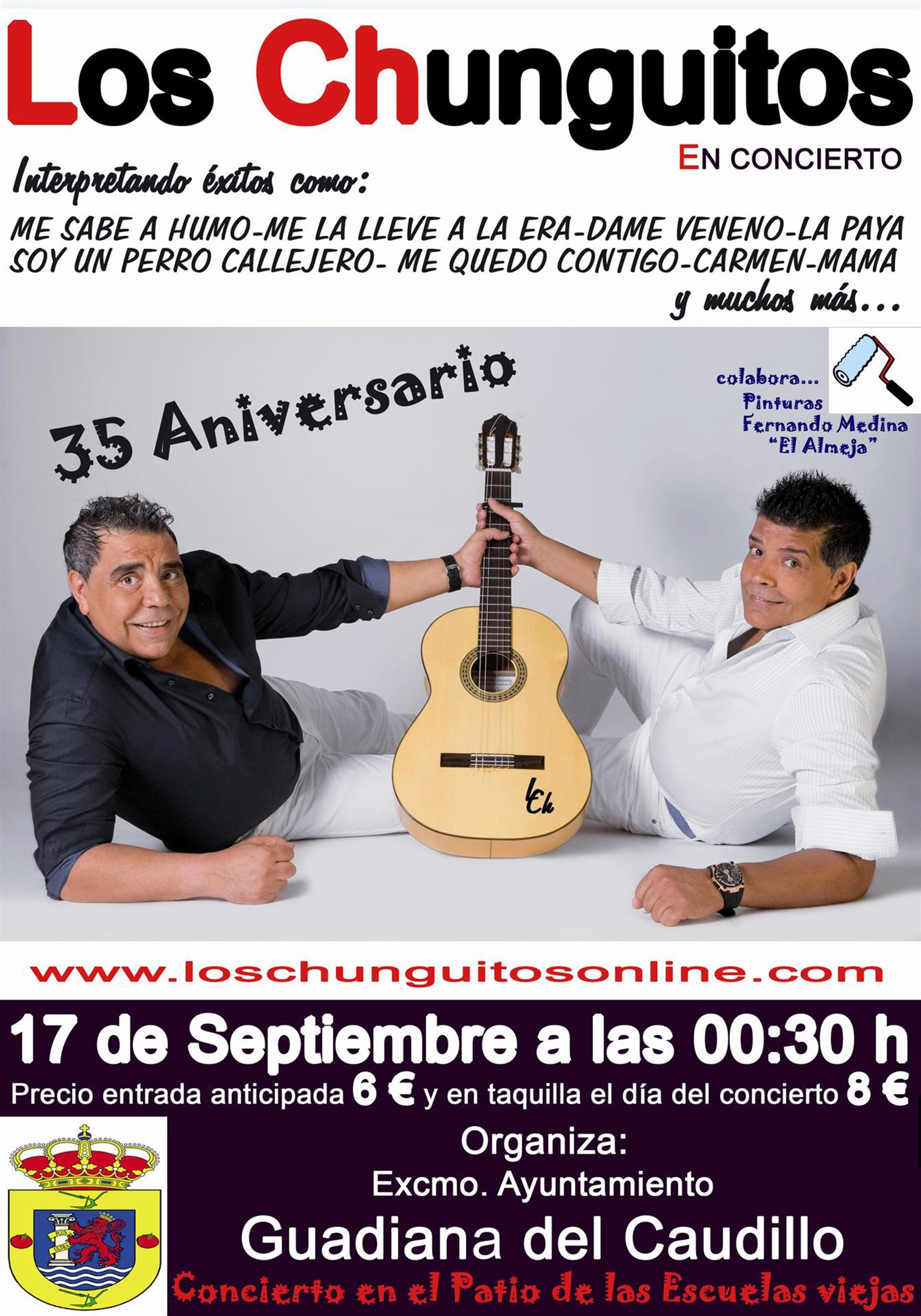 Los hermanos Juan y José Salazar, 'Los Chunguitos', visitarán de nuevo Extremadura dentro de su gira 35 Aniversario, para ofrecer un concierto en el Patio de las Escuelas Viejas de Guadiana del Caudillo (Badajoz) con motivo de sus ferias y fiestas.