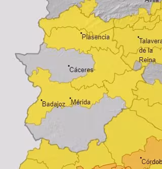 En concreto, y según la previsión de la Agencia Estatal de Meteorología, la alerta se activará en las comarcas pacenses de Vegas del Guadiana y La Siberia, así como en las comarcas cacereñas del Tajo y el Alagón, al tiempo que las zonas del norte de Cáceres, Villuercas y Montánchez alcanzarán máximas de 36 grados centígrados.