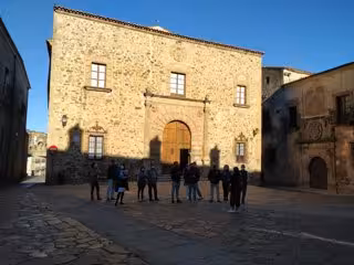 Un grupo de turistas con mascarilla visita la parte antigua de Cáceres - EUROPA PRESS - Archivo