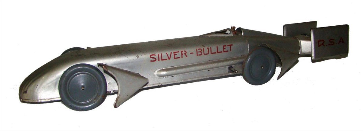 En otro orden, la pieza expuesta en el museo tiene el nombre de Silver-Bullet escrito en uno de sus laterales con letras rojas, al igual que en el par de alerones traseros aparecen también las iniciales R.S.A y funciona con un mecanismo a cuerda con llave.