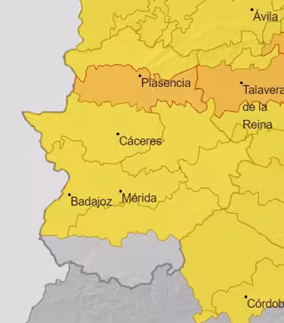Por su parte, el resto de la región extremeña permanecerá en alerta amarilla por temperaturas máximas de entre 36 y 38 grados, excepto el sur de la provincia de Badajoz, que este sábado no contará con ningún aviso activado.