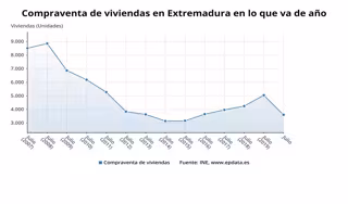 Con estos datos, Extremadura presentó en julio una tasa de 75 operaciones de compraventa de viviendas por cada 100.000 habitantes, por debajo de la media nacional, que está en 88 casos.