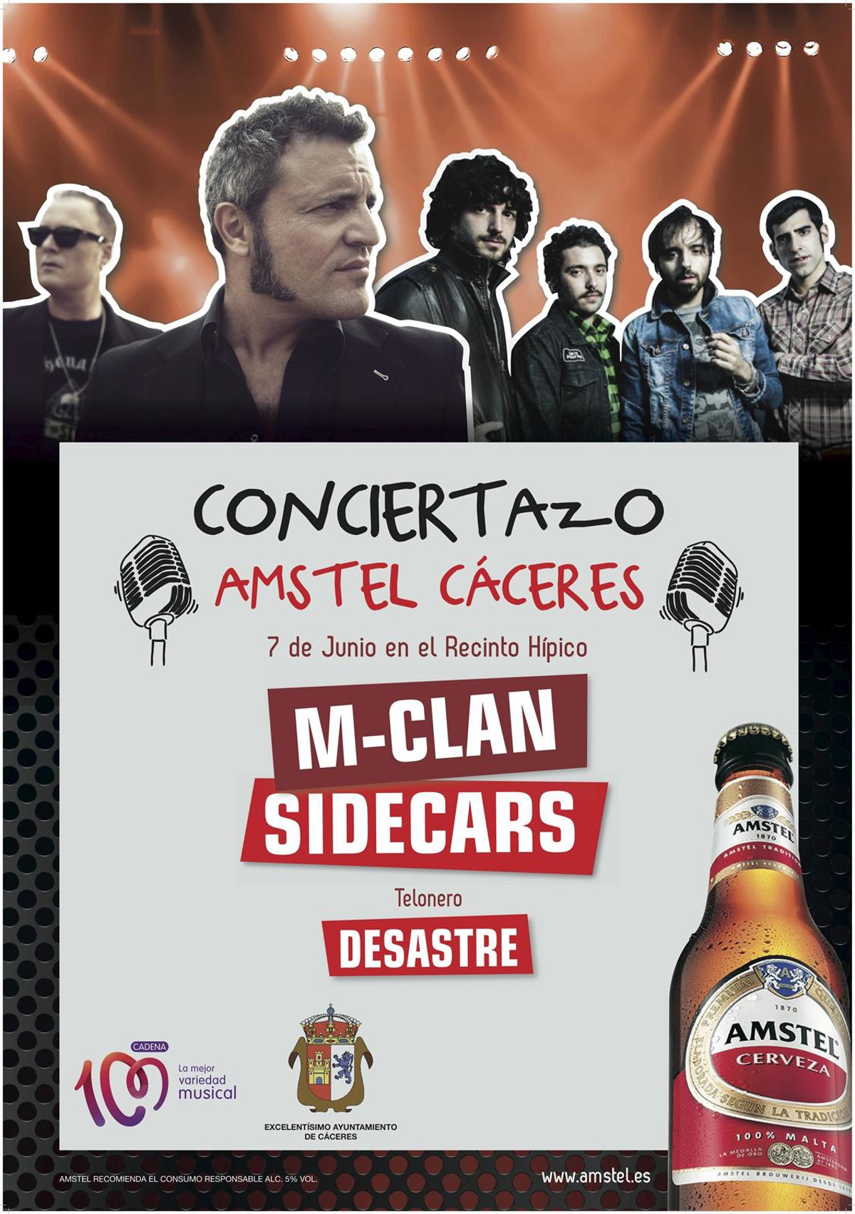 El 'Conciertazo Amstel' recalará por primera vez en Cáceres con un cartel que incluye a 'M-Clan' y 'Sidecars', dos bandas "de potente directo", y que tendrá como teloneros a Desastre.
