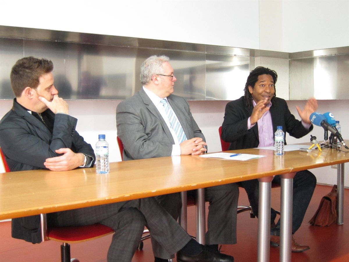 El director general de Promoción Cultural del Gobierno de Extremadura, José Antonio Agúndez, el director titular de la Orquesta, Álvaro Albiach, y el músico de la OEX y promotor de este certamen, Reynold Luis Cárdenas, han presentado esta iniciativa denominada 'Concurso Reynold' que premiará a los equipos ganadores con la interpretación del recital galardonado por parte de la OEx y de los propios chicos.