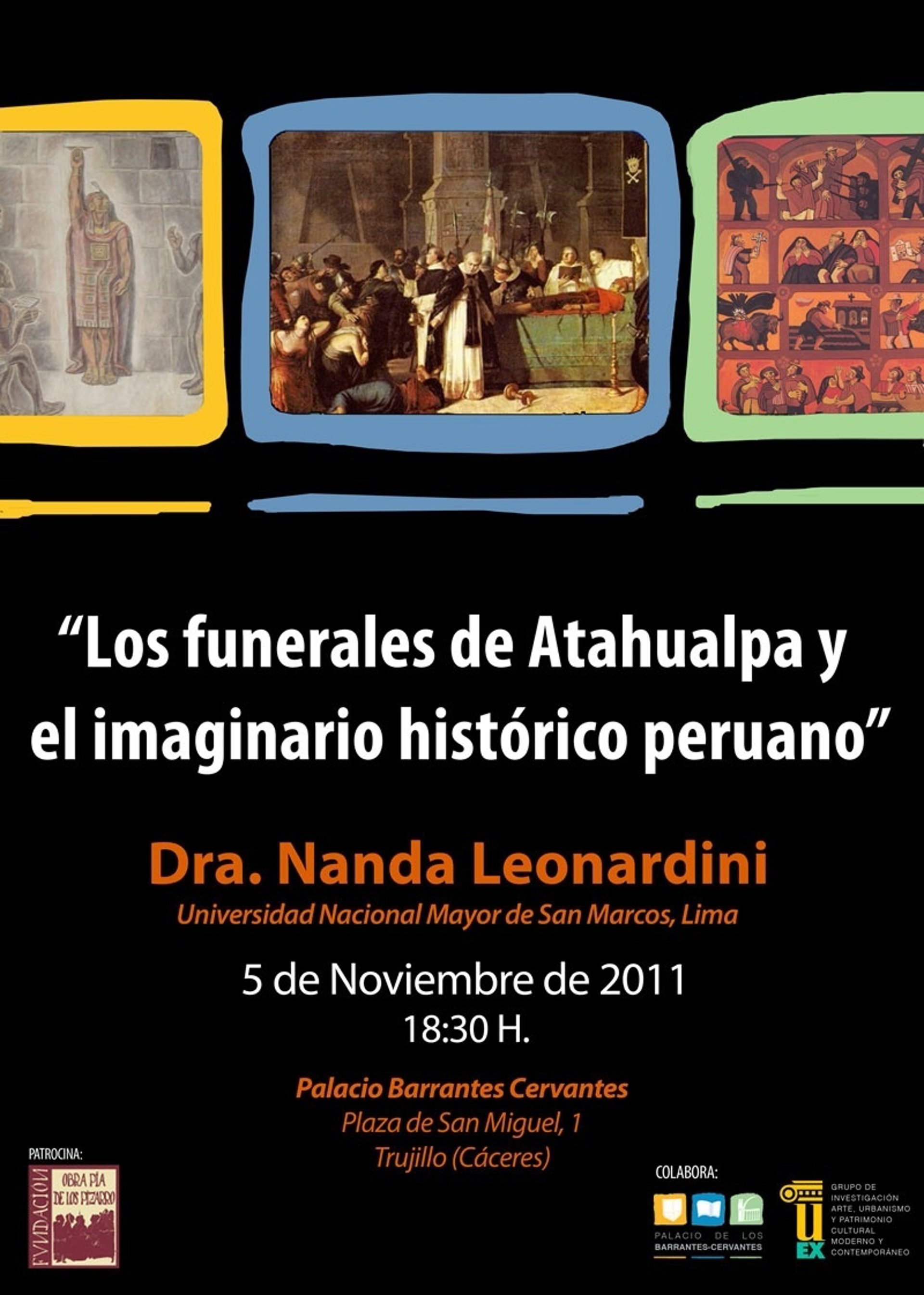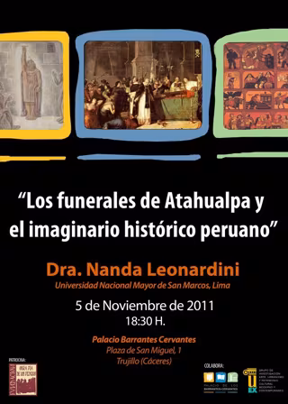 El Palacio de los Barrantes-Cervantes de Trujillo (Cáceres) acoge este sábado, día 5, a las 18,30 horas, la conferencia titulada 'Los funerales de Atahualpa y el imaginario histórico peruano', impartida por la doctora doña Nanda Leonardini, de la Universidad Nacional Mayor de San Marcos de Lima, Perú.