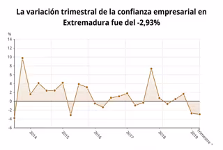 El Índice de Confianza Empresarial Armonizado (ICEA), cuya publicación corresponde al Instituto Nacional de Estadística (INE), ha bajado un -2,9% en Extremadura en el primer trimestre de este año respecto al trimestre anterior, lo que supone una variación de -3,5% si se compara con el mismo trimestre del año pasado.